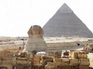 A Grande Esfinge e as pirâmides de Gizé, erguidas durante o Império Antigo, são hoje ícones nacionais no centro da indústria egípcia do turismo.